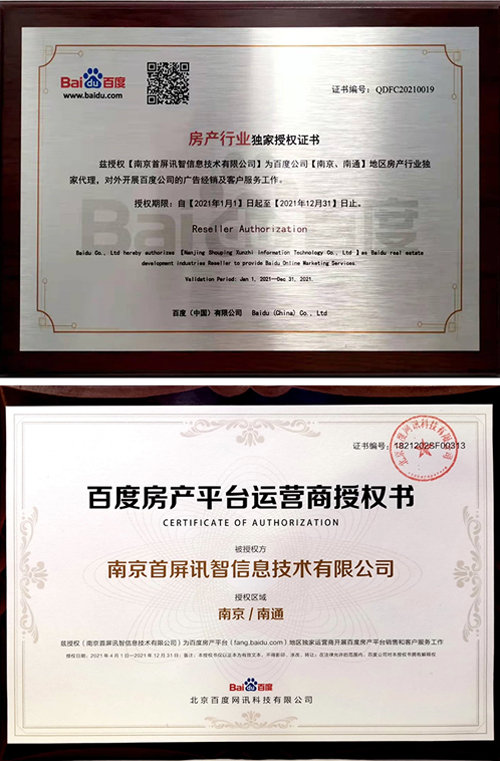 會上,百度公司正式授權(quán)南京首屏訊智信息技術(shù)有限公司為南京、南通地區(qū)房產(chǎn)行業(yè)獨(dú)家代理商及百度房產(chǎn)平臺南京、南通地區(qū)獨(dú)家運(yùn)營商,并頒發(fā)授權(quán)證書。首屏訊智自2004年成為百度合作伙伴,始終致力于為廣大企業(yè)提供優(yōu)質(zhì)的互聯(lián)網(wǎng)營銷服務(wù)。擁有17年豐富互聯(lián)網(wǎng)行業(yè)服務(wù)經(jīng)驗(yàn)的首屏訊智,已服務(wù)南京企業(yè)2萬余家,助力廣大企業(yè)快速穩(wěn)健發(fā)展。